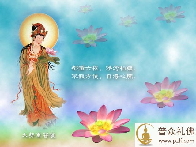 象其他的,比如眼根那,就不要再东张西望了,眼睛只能看到前面的一点。鼻根,你就不要闻外面的香味了,只闻室内的味道。身根,你要结手印啊。这些其他的四根啊,不摄自摄,都摄住了。然后,你就好好的把这句“南无阿弥陀佛”名号念得相续,不间断,这就是净念相继。为什么?这句名号是清净的,叫“无生清净的摩尼宝珠”。我们的念头放在这个宝珠上,念头那种染着就会变得清净,我们的散乱就会变得专一,我们的分别就会变成平等。这就是“净念”,“相继”就是不间断。这就是“入三摩地,斯为第一”。入三摩地,就是那种止观、定慧等持的状态,那样的状态呢,这种方法是最为第一的。所以有的时候我们写对联,这边写“是心作佛,是心是佛”,那边写“都摄六根,净念相继”,二者是一个理论,一个方法。