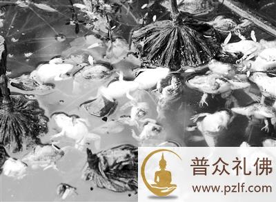 一位风景区的工作人员向记者解开了谜团:这里的死青蛙是热心市民买来放生的!这片荷塘,经常有人买来泥鳅、鳝鱼、乌龟等来此放生,他上次看到有人开着车来用塑料袋子装着一袋子青蛙,等到了荷塘放生时,不少青蛙已经被憋死了。他还看到有的热心市民准备将青蛙放在东湖里,他制止过,“放生也要看环境啊,现在东湖里青蛙怎么生存呢?”